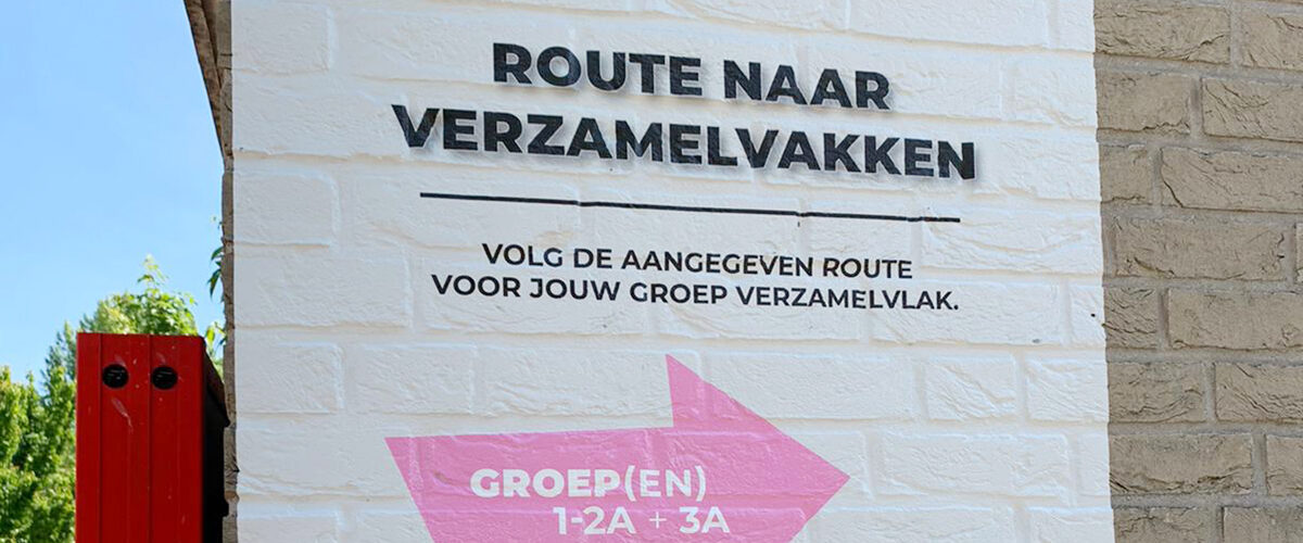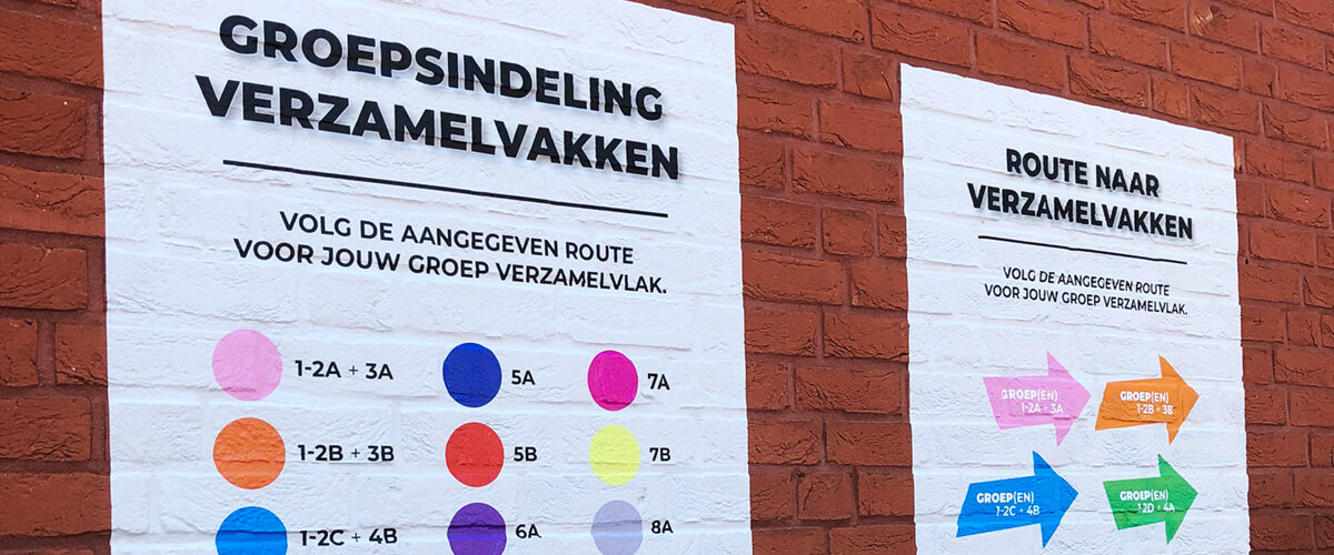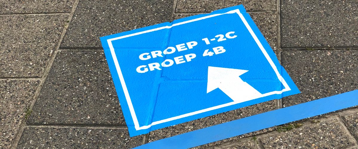A modified wayfinding had to be devised for the reopening of OBS de Westwijzer, a large primary school with double classes, double the number of classrooms and a total of around 500 pupils. Split into 16 classes, the 500 pupils had to be divided up among three entrances and two time slots in order to enter the school. This regulated the flow of pupils in the school.