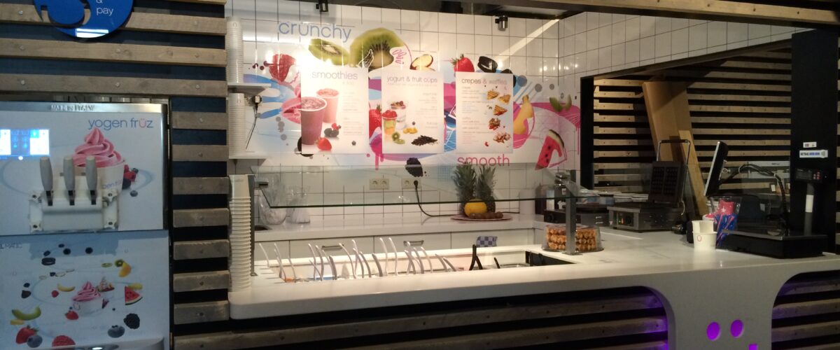 Signshop Amsterdam was asked to handle the in-store signing for two Dutch Yogen Früz shops. Based on the designs provided and the existing franchise concept guidelines, we transformed both locations to reflect the recognisable fresh and bright Yogen Früz style.